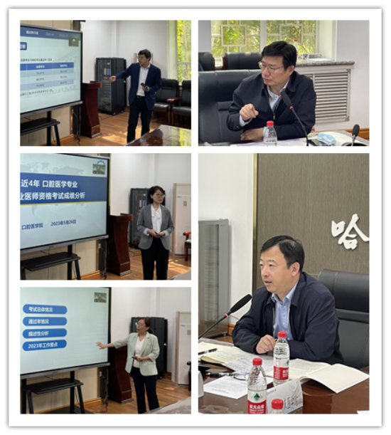 高教研究与教学质量评估中心副主任赵霁阳、口腔医学院副院长潘爽、公共卫生学院副院长王帆分别对2022年临床、口腔、公卫类别的执业医师考试成绩进行数据挖掘和分析,并针对暴露出的问题和不足给出相应建议。教务处处长钟照华对2023年医师资格考试管理工作做了全面部署。