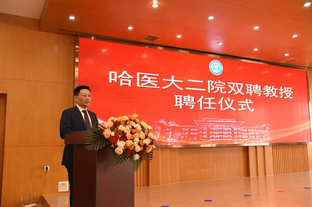 为促进基础研究和临床实践深度交叉融合,实现多学科协同创新,12月4日,哈医大二院举行双聘教授聘任仪式,哈医大二院副院长贾海波主持聘任仪式。