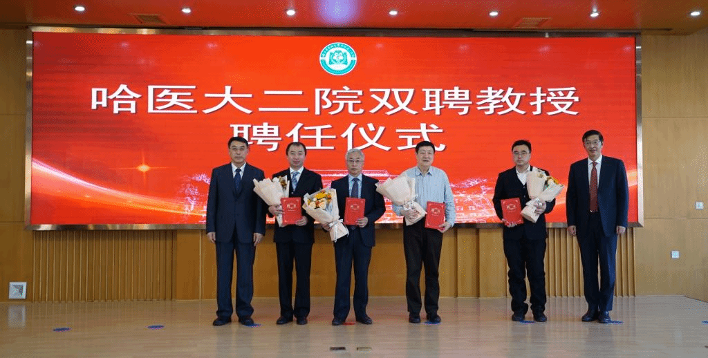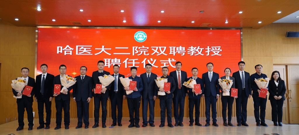 哈医大二院领导班子为双聘教授颁发聘书并合影留念