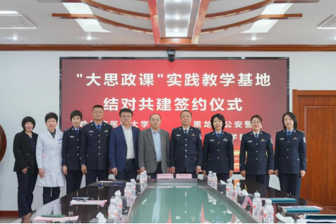 3月25日,哈医大肿瘤医院与黑龙江公安警官职业学院举行“大思政课”实践教学基地结对共建签约仪式。
