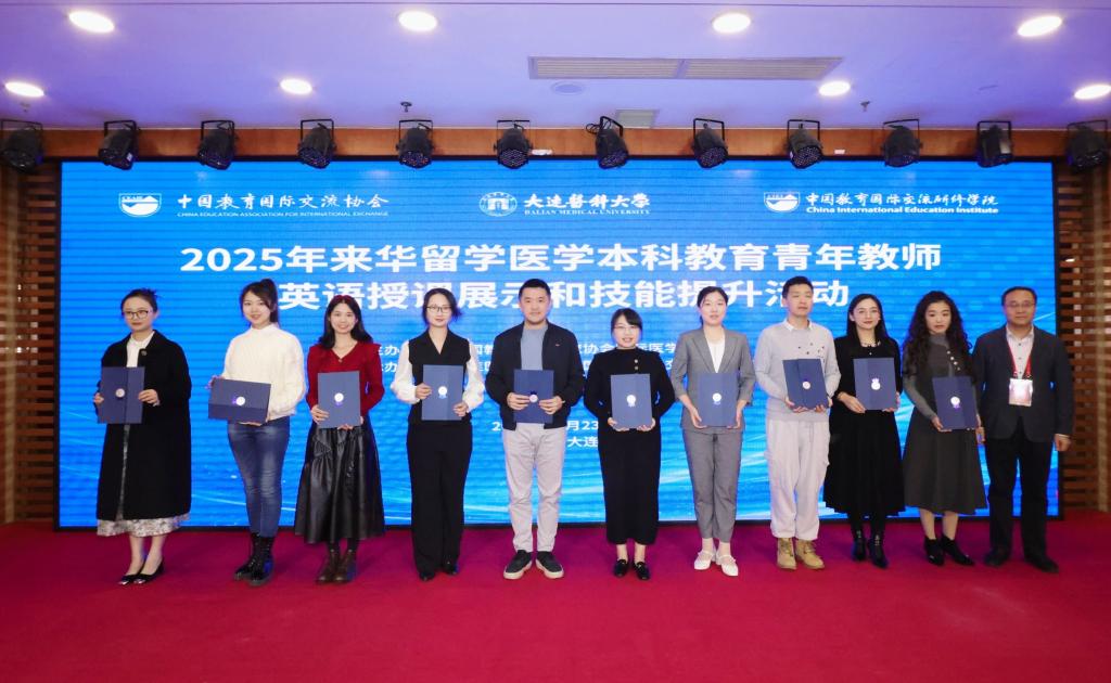 10月24日至25日,由中国教育国际交流协会主办、大连医科大学与中国教育国际交流研修学院共同承办的2025年来华留学医学本科教育青年教师英语授课展示和技能提升活动在大连市举行。活动汇聚了来自全国47所高校的优秀医学青年教师,展示英语授课风采,交流教学经验。哈尔滨医科大学附属第一医院青年教师王姝丹代表学校参加展示,凭借出色的教学表现获得专家高度评价。