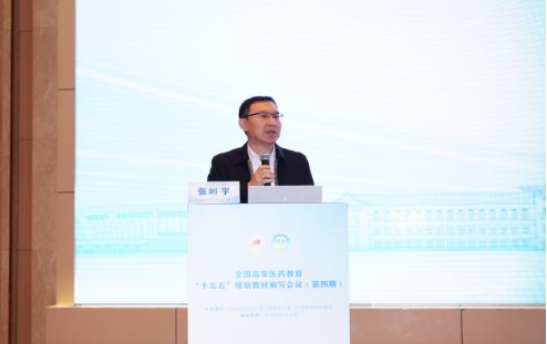 中国中医药出版社副社长张峘宇致辞并传达全国高等医药教育“十五五”规划教材主编会议精神。张社长从教材建设的总体布局、质量标准、数字化创新方向等方面进行了阐述,强调了教材在医药教育体系中的引领作用,并对后续教材编写、审稿及出版工作提出了明确要求。