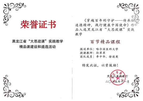 近日,黑龙江省“大思政课”实践教学精品课程遴选结果揭晓。《传承伍连德精神 践行健康中国使命》——“习近平新时代中国特色社会主义思想概论”课实践教学,成功入选省级精品课程。