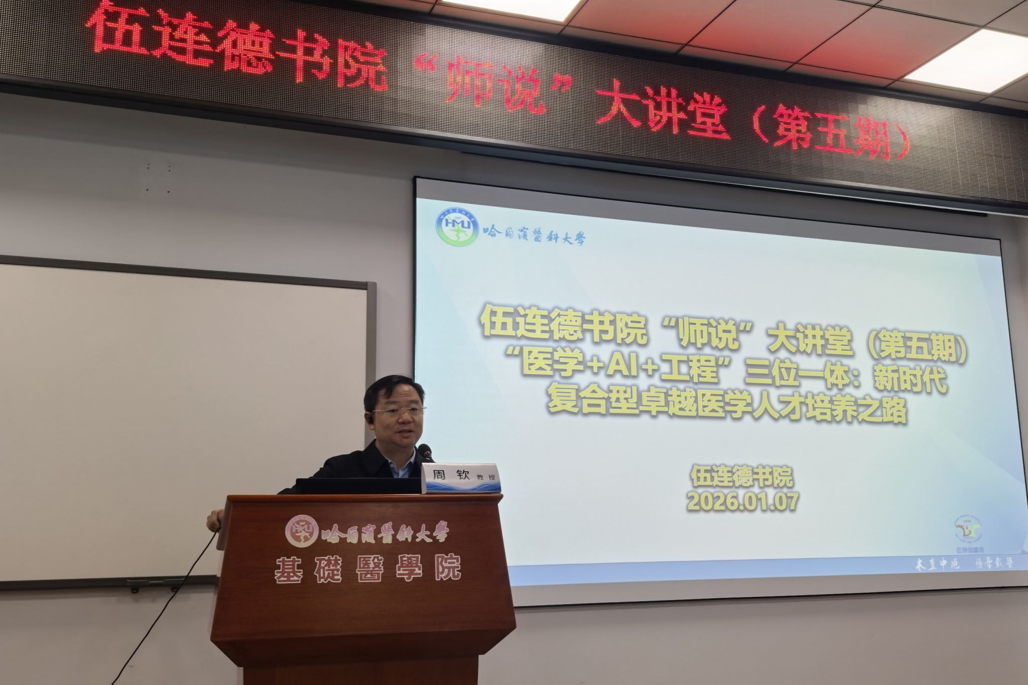 1月7日下午,伍连德书院“师说大讲堂”第五期活动顺利举办。本次讲堂活动以“‘医学+AI+工程’三位一体:新时代复合型卓越医学人才培养之路”为主题,邀请多位生物医学工程领域知名专家,共同探讨医工交叉融合背景下的医学人才培养新范式,为基础医学长学制学生赋能职业生涯规划,开拓医工交叉融合新视野。副校长周钦出席活动并致辞。