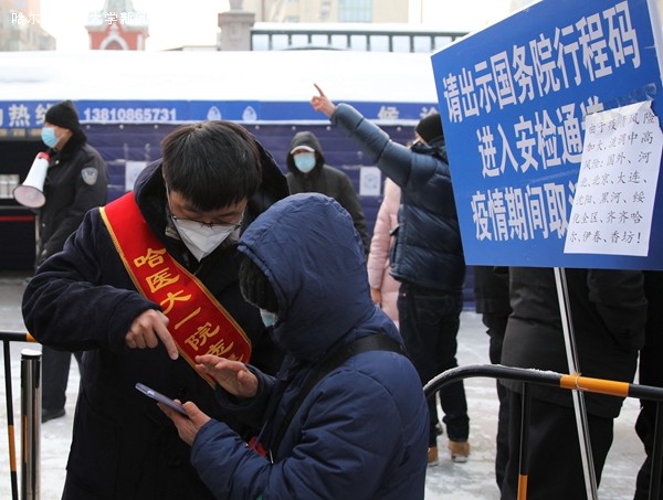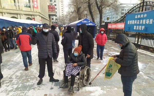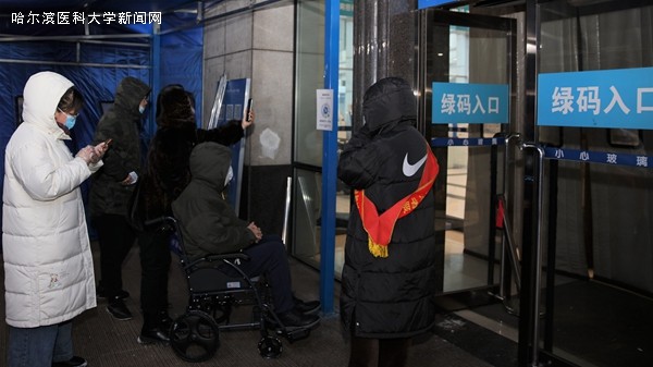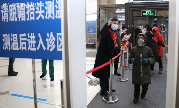 1月13日7:00,天刚蒙蒙亮,哈医大一院门诊的志愿者们,已经站好各自的岗位,为提前到院准备就诊的患者们进行“五检两清”、引导就诊等服务,让患者安心就诊的同时,也不让一个可能的风险进到医院。