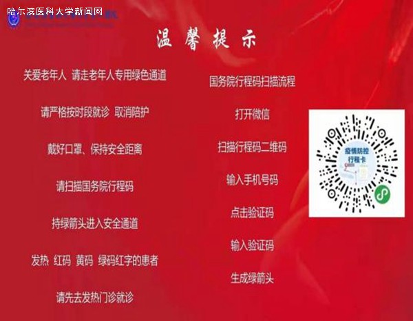 门诊所有入口、卡口多处粘贴国务院行程码及龙江健康码,来院的所有患者需扫描国务院行程码、龙江健康码,持绿码方可进入安全通道,测量体温后进入门诊大厅。