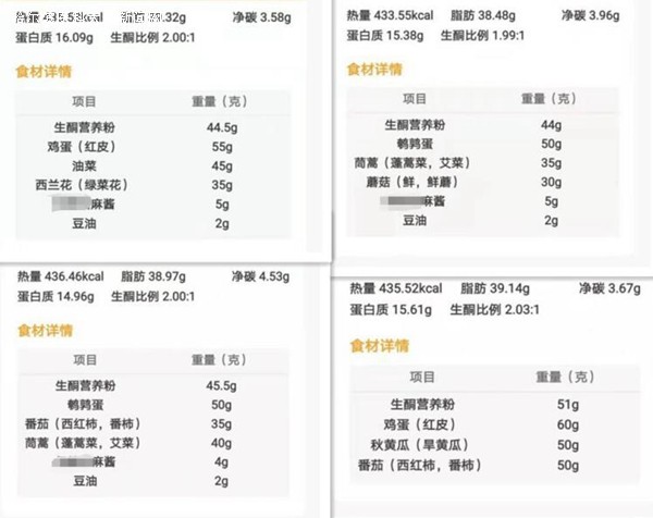 图为患儿部分生酮治疗食谱