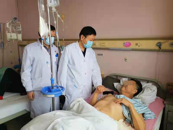 出院前,刘明教授和汤庆超副教授对患者恢复情况进行查看