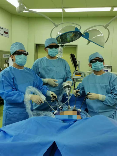在普外科专家刘明教授的指导下,汤庆超副教授带领团队完成保留左结肠动脉的腹部无辅助切口经肛门拉出切除标本的3D腹腔镜下中位直肠癌扩大根治术(NOSES-II式)