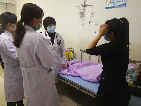 急诊儿科姜明宇医师在了解情况后,立即给予患儿水合氯醛灌肠止惊,抽搐停止,便立即为患儿办理住院。由于疫情防控需要,患儿及陪护需在缓冲病房等待新冠排查检测结果方可进入住院部,为减轻患儿痛苦并且及时为患儿用药,哈医大一院儿科病房调配护士孙楠迅速赶到急诊,及时处置患者--采血、建立静脉通路,并给予患儿家属正确的护理指导。随后小笑笑转入医院儿科病房,诊断为婴幼儿急疹、热性惊厥,在得到良好治疗后,已痊愈出院。