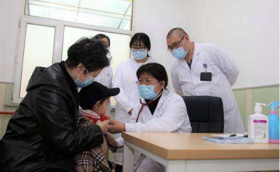 群力院区儿内科杜玉敏副主任医师耐心为小患儿听诊
