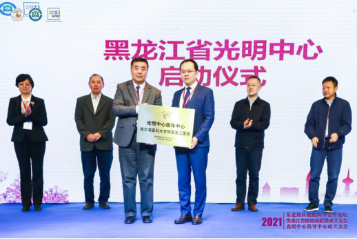国家眼部疾病临床医学研究中心主任、中华医学会眼科学分会副主任委员、上海交通大学附属第一人民医院眼科中心主任许迅教授为哈医大二院光明中心指导中心授牌