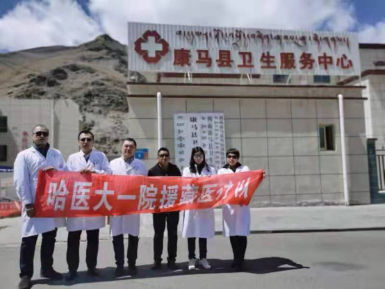 为落实黑龙江省卫健委关于省三级医院对口帮扶西藏贫困县县级医院工作要求,应西藏康马县卫生服务中心2021年计划的需求,哈医大一院第七批援藏医疗队5名医疗队员于5月7日出发,在抵达康马县,经过一段时间的休息和适应后,开始了为期一年的援藏工作。康马且距离哈尔滨5100多公里,地处青藏高原南部,海拔4300米。5名队员都是80后,消化内科副主任医师芦曦,急诊外科副主任医师周昊昕,CT室主治医师张金玲,麻醉科主治医师王东春和手术室主管护师胡婕都是主动响应医院号召,自愿报名参加援藏工作。