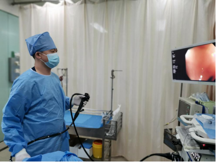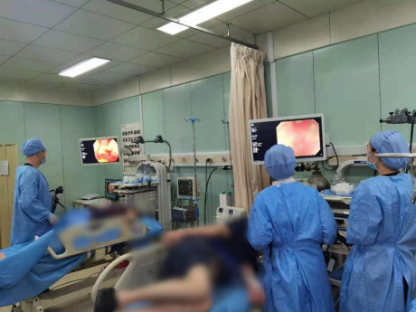 消化内科赵磊副主任医师为患者进行内镜手术