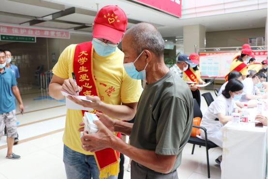 针对多数患者年纪较大,对自己的情况介绍不清,大学生志愿者们耐心、详细地了解每一位老人身体和疾病的具体情况,并导引合适的专家进行诊疗。