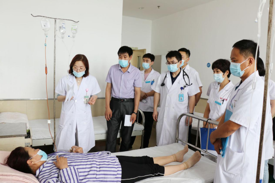 义诊结束后,医疗队的各位专家顾不上休息,分别深入内科、骨科、手术室进行查房、疑难重症会诊及指导工作。在内科病区,内分泌科匡洪宇教授、消化内科史立军教授、心血管内科公永太教授、神经内科孙晓嘉副教授为一例冠心病、糖尿病性酮症、心功能不全的重症患者进行疑难病例会诊,提出治疗意见。专家们的亲身传授,为明水县人民医院的医师拓宽了临床工作的诊疗思路,提升了疑难病例的诊治能力。
