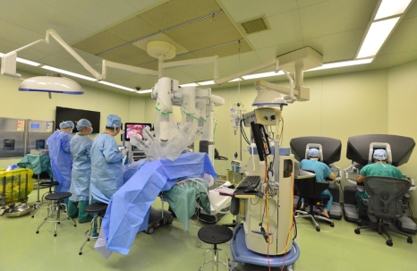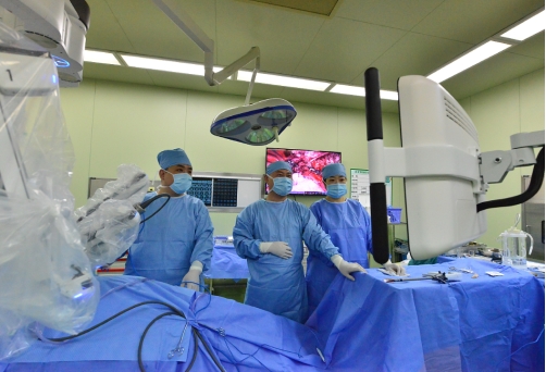 哈医大二院胸外科主任张临友教授带领团队进行达芬奇机器人手术现场