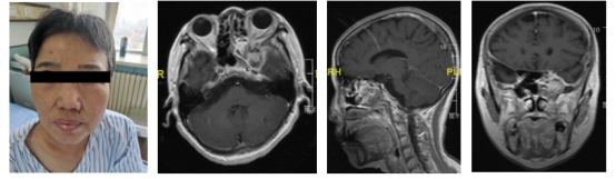 该患者发病时间较长,病变涉及范围广泛,浸润的结构较多,累及海绵窦、蝶窦、筛窦、上颌窦及翼腭窝,周围毗邻重要的血管及神经包括斜坡旁、海绵窦段颈内动脉、III- V颅神经、翼腭神经节及颌内动脉,手术难度大,稍有不慎将造成无法挽回的后果。