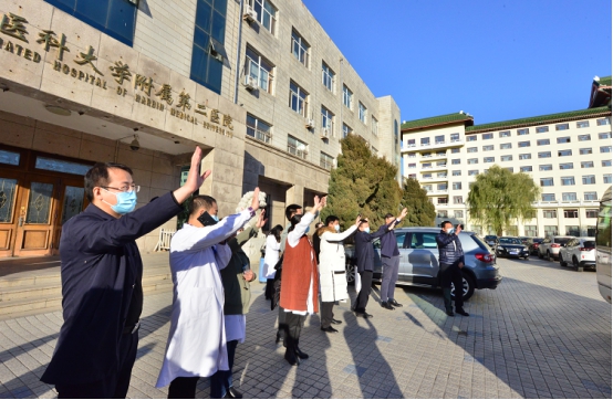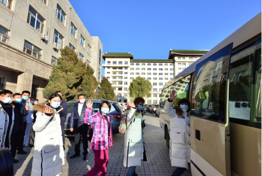 焦军东深情地说:同志们,大家辛苦了!很多人是刚刚结束隔离,回家不到半个小时就再次出发。作为医务工作者,在人民需要的时候,就要挺身而出。黑河天气很冷,任务艰巨,在前线一定要做好防护、保重身体,盼望大家早日凯旋!