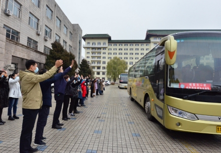 出征仪式上,焦军东作动员讲话。他表示,疫情再次袭来,哈市开始进行全民核酸检测。根据上级单位要求,医院再一次派出精英强干的核酸检验队伍出征移动实验室。在上次支援任务中,哈医大二院移动实验室零差错精准完成标本检验工作,出色圆满完成任务。相信即将出征的这支检验队也定能不辱使命,斗志昂扬,展现医大二院人风采,期盼大家早日凯旋归来。