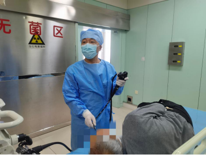 哈医大二院消化内科四病房关景明主任医师为患者进行检查