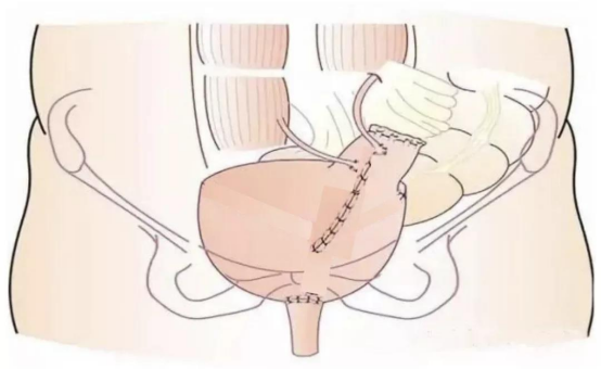 传统的膀胱全切手术后,行输尿管皮肤造口或回肠膀胱术,下腹皮肤造口不自主排尿,集尿袋收集尿液,排尿习惯完全改变,对患者的生活质量及心理影响很大。原位可控膀胱为近年来国内开展的新技术,它是将截取的肠管缝合成与正常膀胱类似的新膀胱,然后将新膀胱与尿道吻合,接近还原正常的生理解剖。