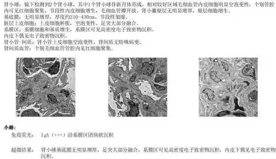 群力小儿内科与手术室和彩超室积极沟通联系并做好充足的准备。在静脉麻醉下,腹部超声科主任杨秀华教授,姜脉涛主治医师及小儿内科团队联合为患儿行彩超引导下的肾脏穿刺活检。仅用半小时,便成功完成儿童全麻下肾脏穿刺活检术。活检病理报告提示符合局灶增生型紫癜性肾炎,ISKD分型为Ⅲb型。