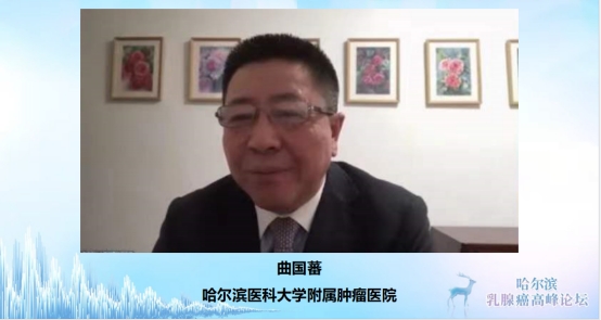哈医大肿瘤医院张清媛教授致欢迎辞,她对本次论坛进行了简要介绍,并对参会的专家和学者表示热烈欢迎。哈医大肿瘤医院院长曲国蕃致开幕辞,他介绍了医院乳腺癌诊区分布、学科建设、发展理念,并感谢各位专家学者的参与,同时祝贺论坛圆满成功。