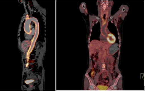 PET-CT显示主动脉及其重要分支、肺动脉都在“发光”