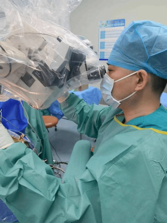 由于患者病情较重,肿瘤涉及脑功能区,单纯手术治疗极易导致患者出现偏瘫等神经功能缺失。滕雷团队在与家属充分沟通后,进行结合术中电生理监测、术中神经导航、术中超声辅助下的多模态开颅肿瘤切除手术。经过精准微侵袭显微手术技术和术中多模态技术结合的手术治疗,患者术后意识清醒,右侧肢体运动逐渐恢复并可下地行走,能够完成日常生活,记忆力和反应迟缓症状明显改善。