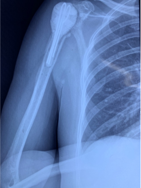 王文波为患者详细检查后,组织张涛副主任医师、金玉峰主治医师科内会诊,针对李女士感染时间长,细菌侵蚀破坏右肩关节,未来肩关节功能将严重受限的情况,制定了先彻底清创关节感染,待患者愈后再次行反向全肩关节置换——分两期手术治疗的个性化方案。