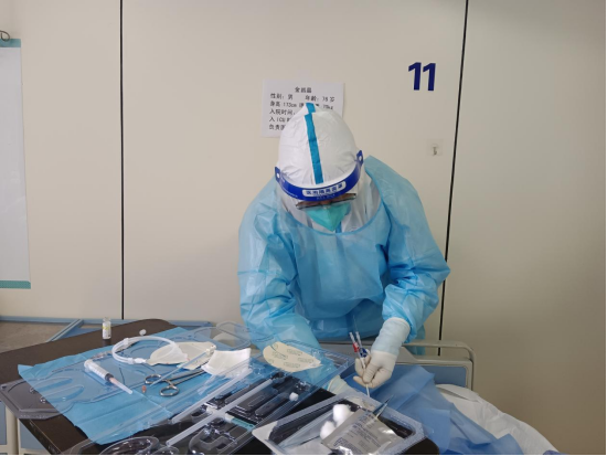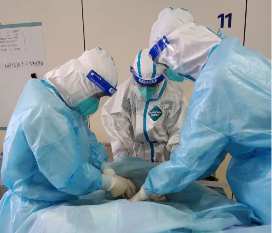 3月15日起,哈医大一院支援吉林重症医疗队整建制接管吉林市中心医院2号楼13楼重症病区后,他们与队员们在10个小时内将药品、抢救设备以及各种耗材准备完毕,并于当晚22时开始收治第一例重症患者。