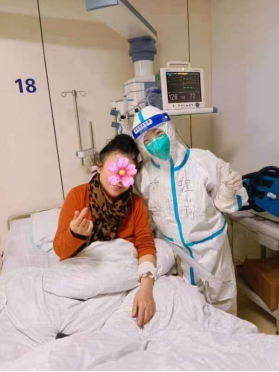 第一天上岗,面对重患,关莉莉内心是忐忑不安的,她暗暗下定决心,要用专业和爱心去帮助患者,很快这种忐忑也就烟消云散了。此后的每一天,抢救患者、转运患者、为患者翻身俯卧位通气……看着患者一天天好转,关莉莉紧绷的心也在逐渐放松,他们被治愈给了她力量和信心。