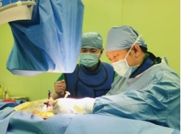 王新涛(右一)和周长龙(右二)手术中