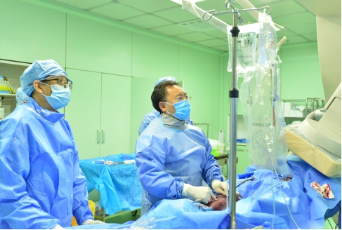 哈医大二院心血管病医院院长、心内科主任于波教授带领团队进行介入手术