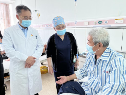 术后三个小时呼吸机、ECMO全部撤机,意识沟通交流全部正常,候静波教授带领团队进行查房