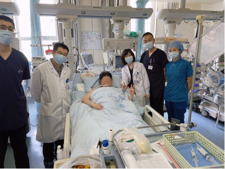 在VA- ECMO联合血液净化的支持下,患者的器官灌注得到了保证。叶明主任带领李云龙副主任医师、马平伟主治医师和ECMO小组的科学管理下,以及科室医护人员的精心照料下,患者的心脏功能很快得到了恢复,同时也为原发病的治疗提供了有效的支持。两天后左心射血分数从入院的37%上升至了62%,并顺利撤除ECMO辅助。在撤除ECMO的第二天患者的病情稳定,意识清醒,给予拔除气管插管撤离机械通气支持,6月9日转入心外科病房继续治疗。