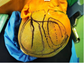神经外科三病房李永利主任带领科室进行详细的术前讨论,制定了完善的术前计划。经过术前充分准备,手术如期进行。术中,王洪军主任医师首先对脑表面的受体血管进行评估,确定有合适的血管供选择,足够进行序贯性三支搭桥。随后分离头皮位置的供体血管,分离两根血管,其中一根血管和额叶脑表面受体血管进行两处搭桥(一处为侧侧吻合既序贯搭桥的第一个吻合口,一处为供体血管远端的端侧吻合),另外一根血管和顶叶脑表面受体血管进行端侧吻合。手术用时6个小时,每个吻合口吻合平均时间为20分钟。