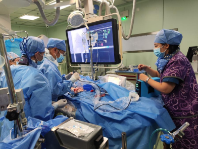 在于波教授的指导下,候静波教授带领陈涛副主任医师进行手术。术中,团队凭借丰富的经验顺利置入ECMO后,应用Shockwave IVL血管内冲击波治疗技术,顺利为三支血管植入五个支架。术后下台ECMO顺利脱机。目前王女士身体状态良好,她笑着说道:“做完手术后,之前心脏不舒服的症状都没有了,心里感觉敞亮多了。感谢你们救了我一命!”