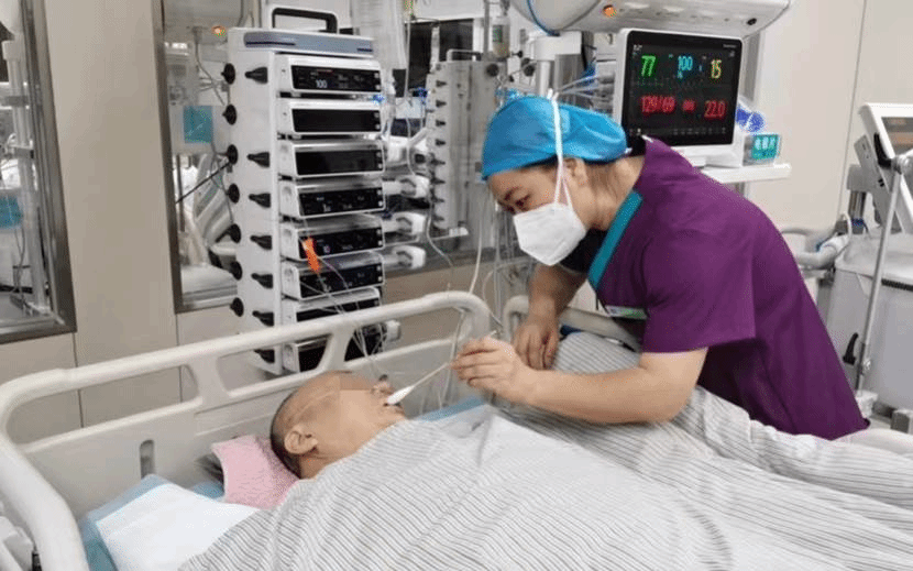 消化内科副主任祝喜萍教授立即将患者转往重症医学科监护室(ICU)。当时,患者神智淡漠、周身湿冷、口唇苍白,重症医学科副主任康凯教授给予紧急备血输血、抑酸抑酶、抗休克等对症治疗,为进一步抢救争取时间。