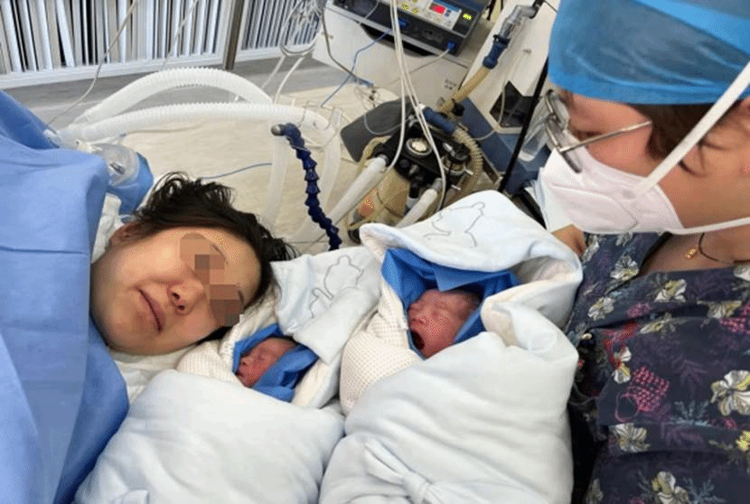 2022年12月29日,五常临近预产期的李女士来到哈医大一院。李女士结婚10年,既往3次不良孕产史,1次流产史,2次宫外孕手术史,已切除双侧输卵管,此次妊娠为试管婴儿,且为双胎妊娠,十分珍贵。随着预产期的临近,全家都满怀期待的准备迎接两个新生命的到来,而在此时,李女士却感染了新冠病毒,夫妻二人一时不知所措。通过网络问诊第一时间咨询了哈医大一院产科蔡丽瑛教授,遵循医生的指导进行对症治疗,并由五常转至哈医大一院分娩,蔡丽瑛教授立即安排李女士入院。