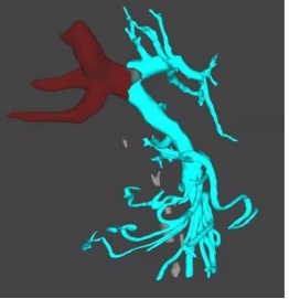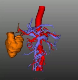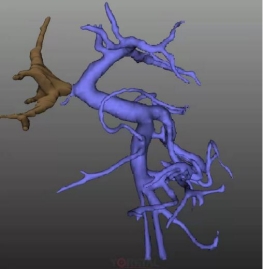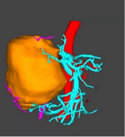 门脉癌栓缩小(左图紫红色为治疗前癌栓,右图灰色为治疗后癌栓)