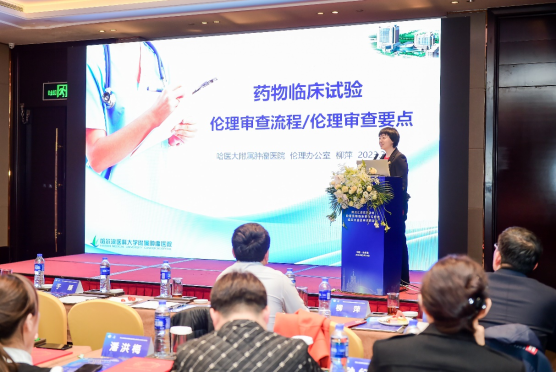随后,进行黑龙江省肿瘤药物临床研究联盟授牌仪式以及肿瘤药物临床研究第一届学术会议。张艳桥教授就临床研究的经验分享作主题报告,她以消化道肿瘤为例,分享对于患者招募、知情同意、患者筛选、患者管理、不良反应处理、疗效评估等各环节注意事项。张明辉副教授就抗肿瘤药物临床试验质量控制进行主题汇报,基于我国各项法律法规及自身经验,他详细介绍了临床试验的全流程质量控制管理,并强调质量是临床试验的生命,试验中一定要注意严格把控试验的合规性,数据的真实性,操作的规范性及记录的完整性。哈医大肿瘤医院伦理办公室柳萍主任就药物临床试验伦理审查流程、伦理审查要点进行分享,并结合各类审查的代表性案例,深入浅出地介绍伦理审查原则、审查流程、审查方式,使参会人员对伦理审查内容有了更深层次的了解。