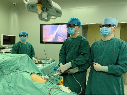 白雪巍主任手术团队为患者实施单孔3D腹腔镜手术