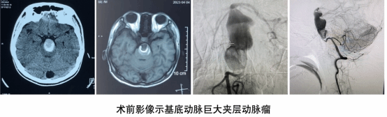 患者因频发头痛于当地医院检查时发现颅内后循环巨大动脉瘤,累及基底动脉全程,核磁显示占位效应明显,压迫脑干,并引起相应的神经功能障碍,如双眼侧视不全等。患者父母辗转多家医院,最终找到了史怀璋教授。