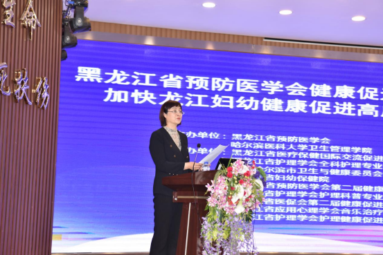 会议开始,哈尔滨医科大学卫生管理学院副院长致开幕词,黑龙江省预防医学会秘书长、黑龙江省健康教育所所长王莹主持。