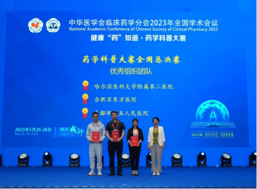 5月28日,中华医学会临床药学分会2023年全国学术会议药学科普大赛全国总决赛在四川成都举行,来自全国药学工作者逾万人参会。哈医大二院药学部药学科普团队作品从470余个作品中脱颖而出,获得全国总决赛“卓越作品奖”。