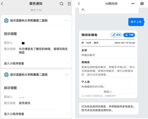 在就诊过程中,医患沟通交流贯穿整个诊疗过程,为提高问诊效率,让患者有更多的时间提前整理病历,同时方便医生提前了解患者病情,医院上线了“AI预问诊”服务。