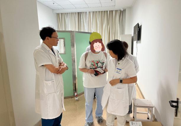 2024年8月9日,患者来到哈医大肿瘤医院门诊进行PRRT治疗,陆海波主任与核医学崔亚利主任为患者及家属详细讲述了PRRT用药的注意事项,治疗风险和获益。治疗中,患者服用了止吐药物及氨基酸类药物,可以减轻副作用,保护肾脏。用药半小时后,在核医学科病房为患者注射了放射性药物镥177-DOTATATE,第一次PRRT治疗十分顺利,症状得到显著缓解,根据治疗方案,患者后续还需要4次治疗,间隔时间为8周。