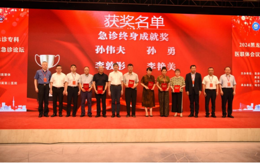 为庆祝建院70周年,推动黑龙江省急诊学科发展和提升急救技术,逐步实现医疗水平同质化发展,8月17日,由急诊专科医联体、黑龙江省急诊专科医联体和北京急诊医学学会联合主办,哈尔滨医科大学附属第二医院承办的“2024黑龙江省急诊专科医联体会议暨东北急诊论坛会议”成功召开。大会在全体参会人员共同合唱的《歌唱祖国》的歌声中开启序幕。开幕式上,蒋建新院士、赵晓东会长、朱华栋教授、聂时南教授、朱长举教授、刘净教授为孙伟夫教授、孙勇教授、李艳美教授、严世序教授、李敦彤教授、张丽教授颁发“急诊终身成就奖”证书,旨在表彰老一辈急诊医生为急诊医学发展做出的贡献。